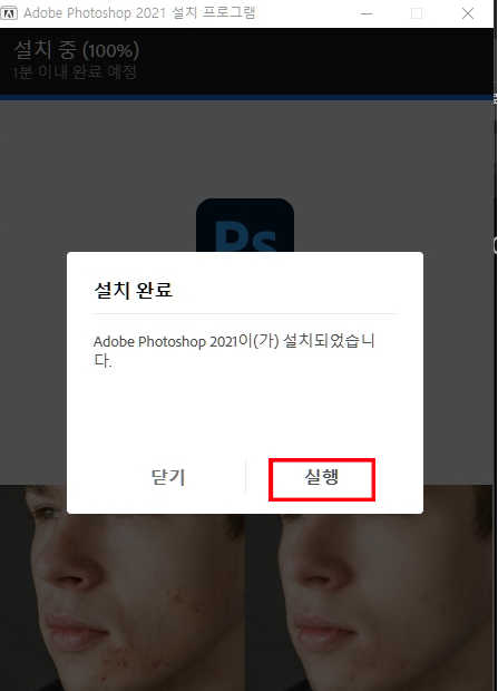 포토샵 다운로드가 끝났다면 [실행] 을 눌러주세요.